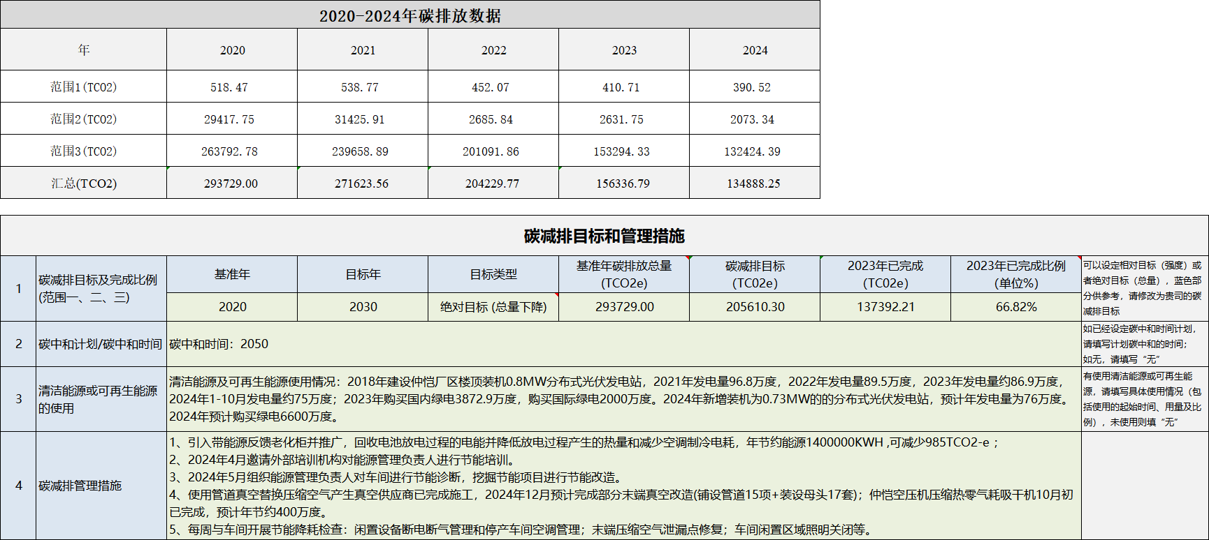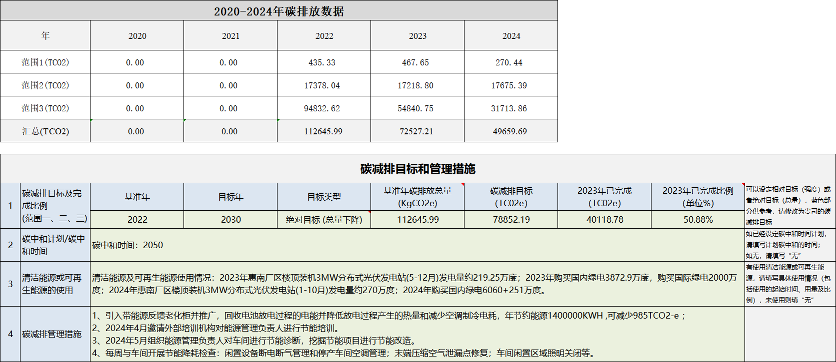 惠南廠區(qū)碳減排目標和管理措施